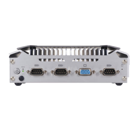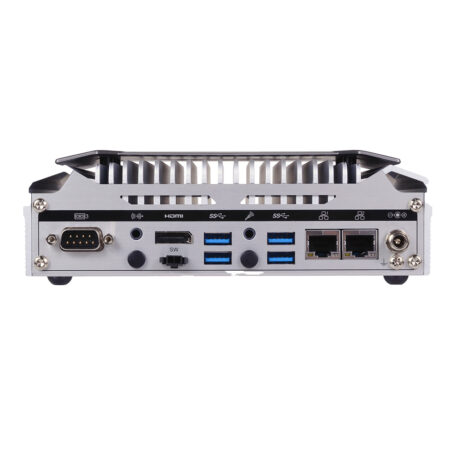 Designed for space-constrained deployments, the EC70A-SU includes a 2.5″ SATA drive bay, dual Mini PCIe slots for wireless or mSATA modules, and a wide 15–36V DC input. Rich I/O support includes dual Intel® GbE, four USB 3.0 ports, and four COM ports, one of which is configurable with 8-bit DIO. Built with a rugged aluminum chassis, it supports DIN rail, VESA, or wall mounting.