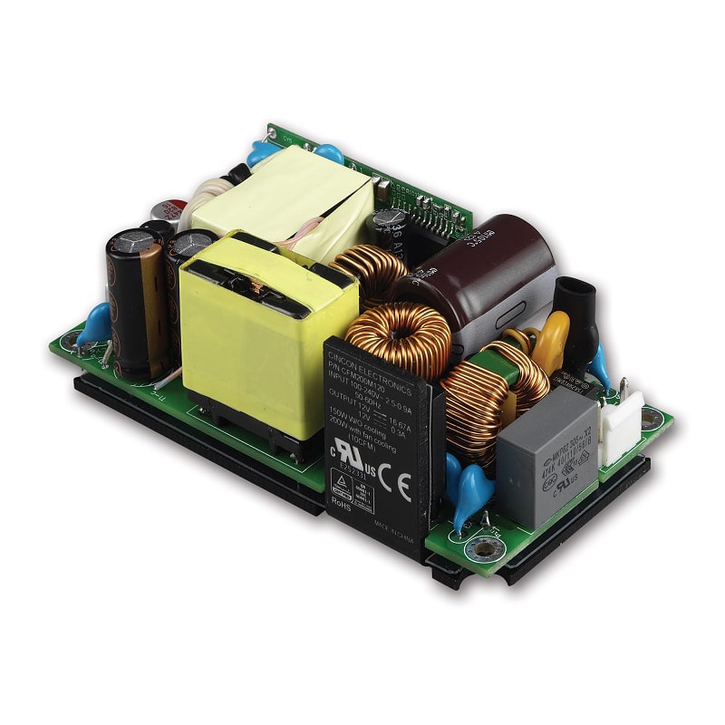 The CFM200M Series is a 200W medical ac-dc power supply with universal 80-264V ac input and efficiencies up to 94%. With single outputs from 12V to 48V, it offers convection-cooled 150W or full 200W with forced air. Available in open-frame, PCB mount, chassis mount and DIN-rail versions, it is ideal for medical, home healthcare and industrial devices. Features include low leakage current (<100µA), Class I and II options, remote on/off and full protection functions. Certified to IEC/EN/UL60601-1, IEC/EN/UL62368-1 and EN60335-1.