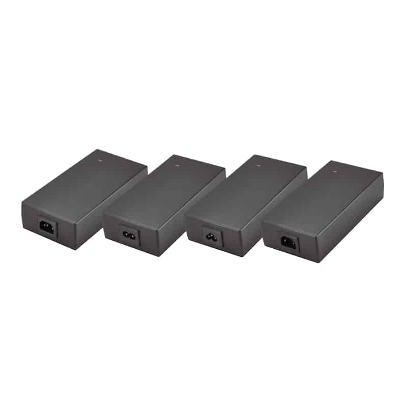 High power density adaptors with universal input, active PFC and full safety approvals.