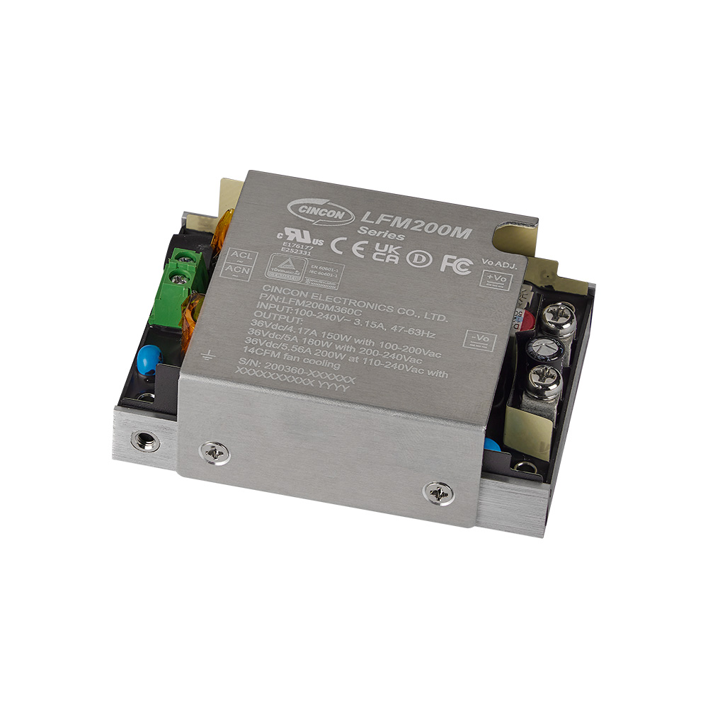 The LFM200M Series is a 200W medical ac-dc power supply with universal 85-264V ac input and efficiencies up to 94%. It has a 25.4mm low-profile package with high power density and supports Class I and Class II installations. Available in output voltages from 12V to 54V, it offers conduction cooling, baseplate and covered options, and delivers full protection features including OCP, OVP, OTP and continuous short circuit protection. Certified to IEC/EN/UL60601-1 (2 MOPP), IEC/EN/UL62368-1 and IEC/EN60335-1.
