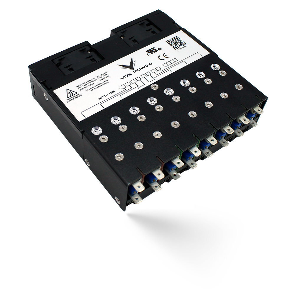 NEVO1200S Series delivers 1200W from 90-264V ac input with efficiency up to 89%. It provides power density of 21W/in³ in a 6” x 6” footprint, configurable with up to eight isolated output modules (16 outputs). Outputs can be paralleled or series connected, with wide adjustment ranges and remote programming. Features include intelligent fan control, active current share, and 5V bias. Designed for industrial, telecom, instrumentation, and automation systems. Certified to IEC/EN/UL62368-1 and EN55032 Class B.